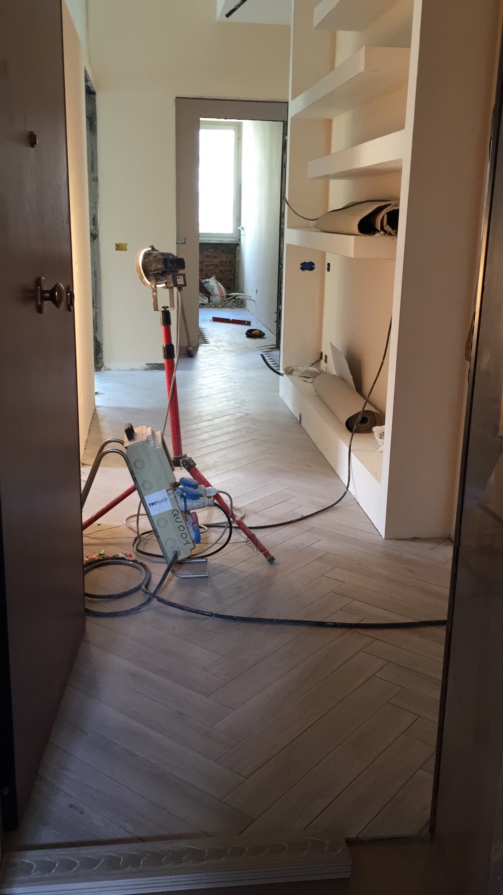 Ristrutturazione chiavi in mano appartamento a Casalecchio Di Reno in Via Respighi . Ristrutturazione completa di tutti gli ambienti e realizzazione degli impianti idraulici ed elettrici nuovi con relativa conformità. Il bagno è stato completamente trasformato: doccia in fondo con finestra in PVC anta unica. All'interno della doccia ribassamento in CARTONGESSO con illuminazione di CROMOTERAPIA a led telecomandata. Piatto doccia in opera con mosaico BISAZZA, rivestimento e pavimento MARAZZI. Il pavimento prosegue in tutta la casa. Sostituite le porte con nuove bianche lisce della TECNOPORTE che collabora con noi per la vendita di porte interne di ogni genere e finitura. Realizzazione di volumi e strutture in cartongesso che caratterizzano e personalizzano i vari ambienti. Nell' ingresso LIBRERIA in CARTONGESSO con veletta superiore a sbalzo per illuminazione. Nella parte bassa della libreria abbiamo inserito arredo BATTISTELLA in appoggio e sotto luce a led comandata. Nel salone create delle MENSOLE in CARTONGESSO che collegano i pilastri presenti. Veletta superiore per nascondere impianto di condizionamento canalizzato. Nella camera matrimoniale la parete a vista è stata personalizzata con carta da parati GLAMORA di grande effetto. Tutta la progettazione e assistenza cantiere gestita e curata da Beatrice, unico riferimento per il cliente. Realizzati progetti e render. Gestione totale anche per quanto riguarda tutte le pratiche edilizie ed urbanistiche.