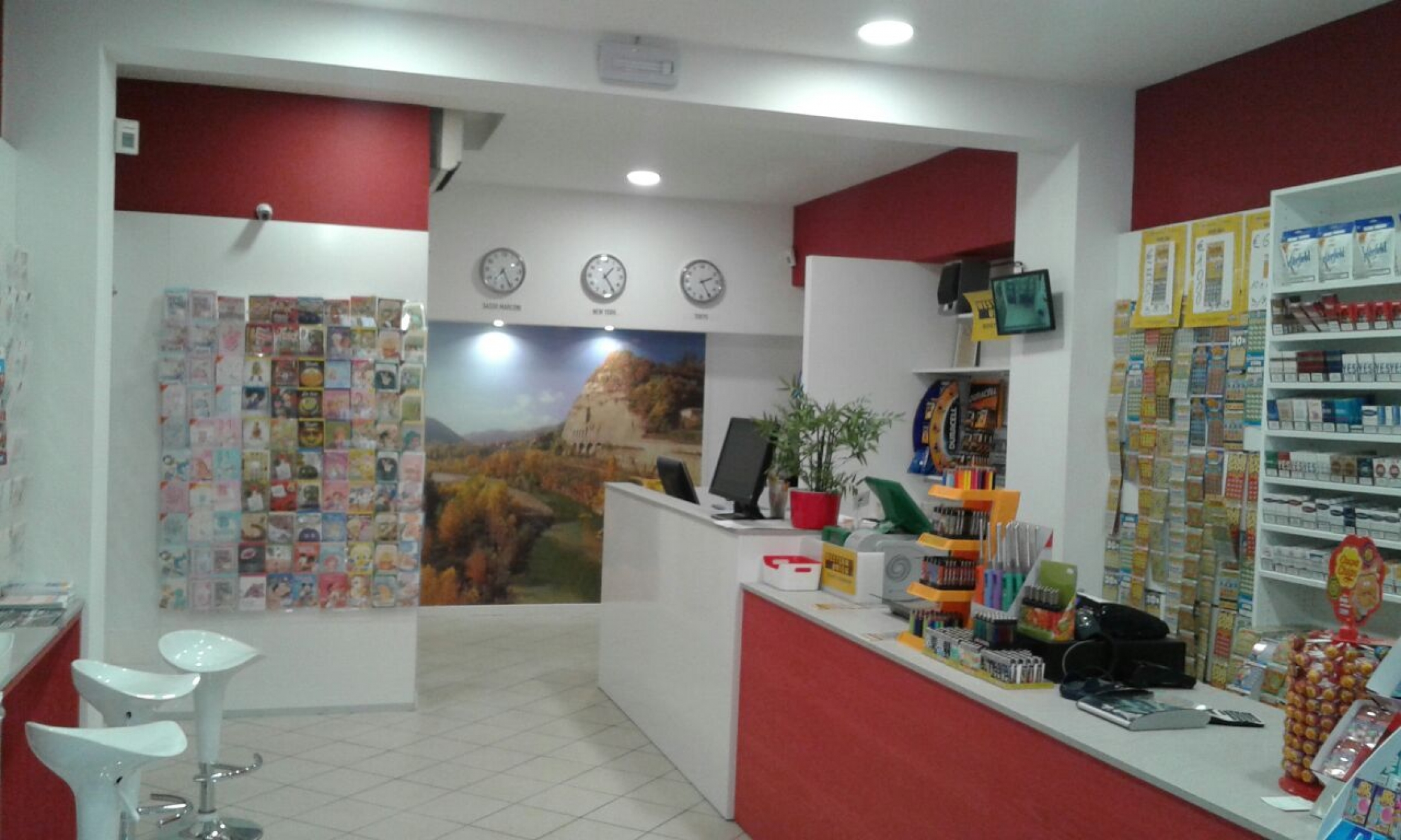 Ristrutturazione e arredamento negozio tabaccheria. Accurata progettazione con studio degli spazi e dei colori. Tutto il negozio è stato completamente stravolto, il nuovo bancone lineare è perfetto e funzionale e contiene tutte le apparecchiature necessarie, le pareti sono state allestite con pannellature dogato ed è stato ricavato con parete in cartongesso un angolo in fondo riservato alle machinette. Tutto il soffitto è stato ribassato con il cartongesso e inseriti fari ad incasso a led. La scelta del bordeaux nelle pareti e l'arredamento bianco lucido fanno del locale un ambiente molto elegante e luminoso...